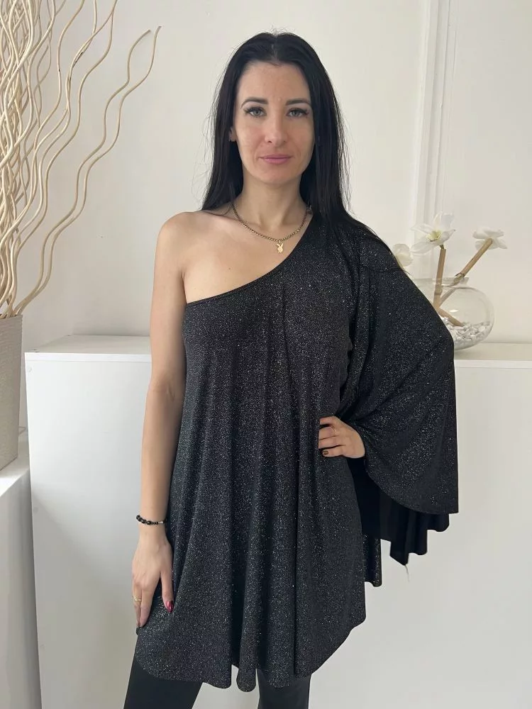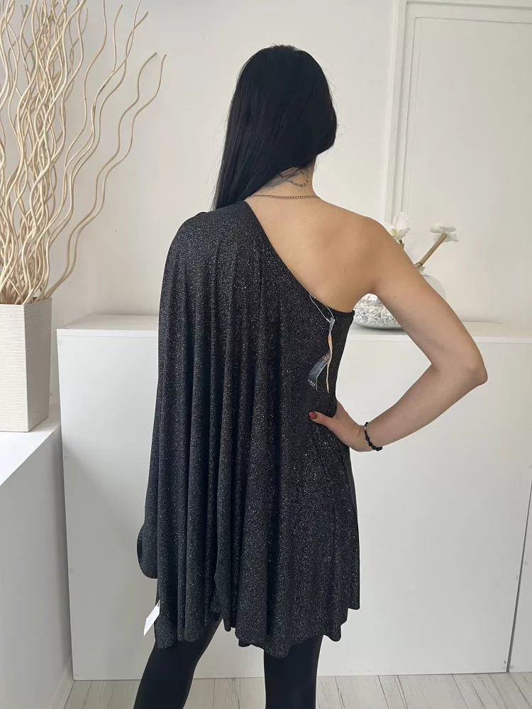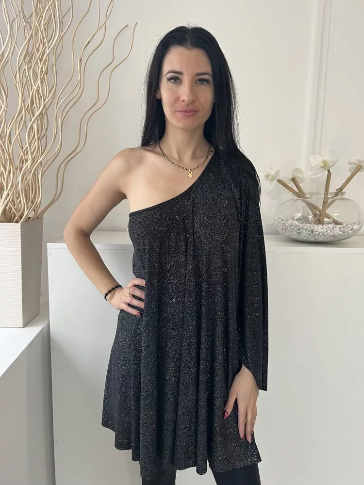 ÚJ Lipsy (M) Fekete Anyagában Ezüst Csillgós Félvállas, Hosszított Fazonú Ruha