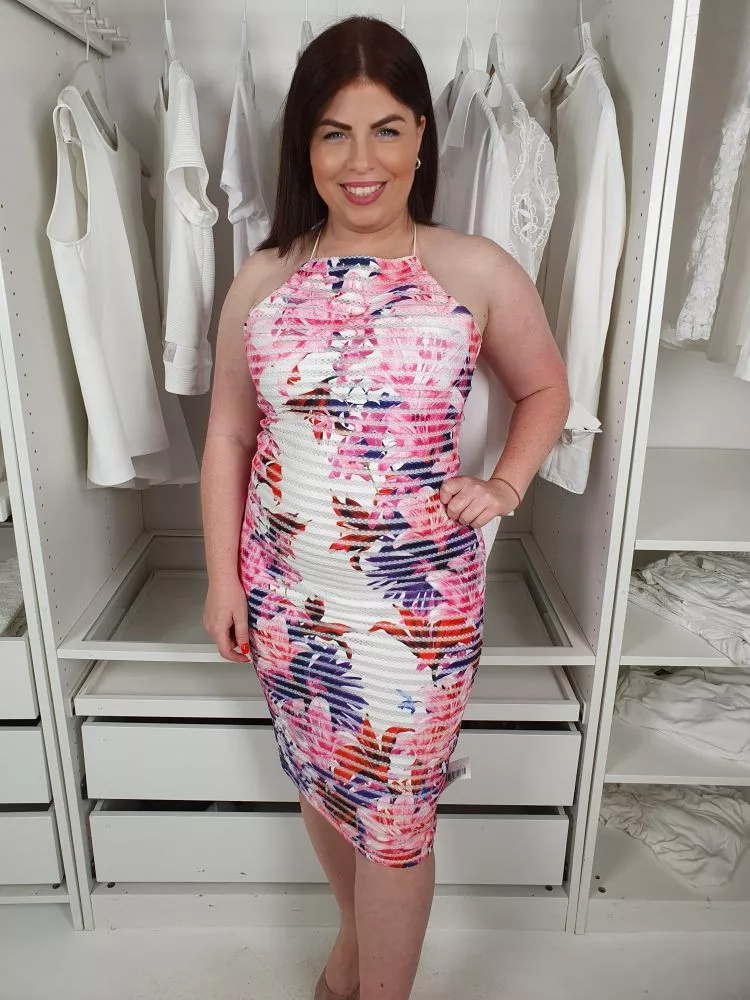 ÚJ Lipsy&Michelle Keegan (M) Fehér-Színes Mintás, Elől Anyagában Csíkos Hátul Cipzáras Ruha