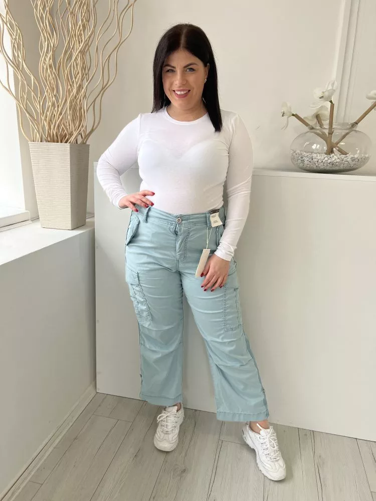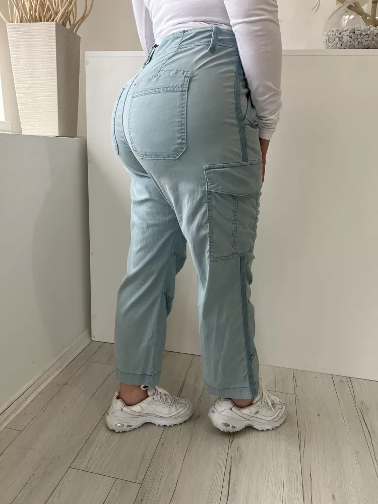 ÚJ M&S (L) Égkék Elől Gombos, Oldalt Zsebes Övtartós, Bőszárú Nadrág