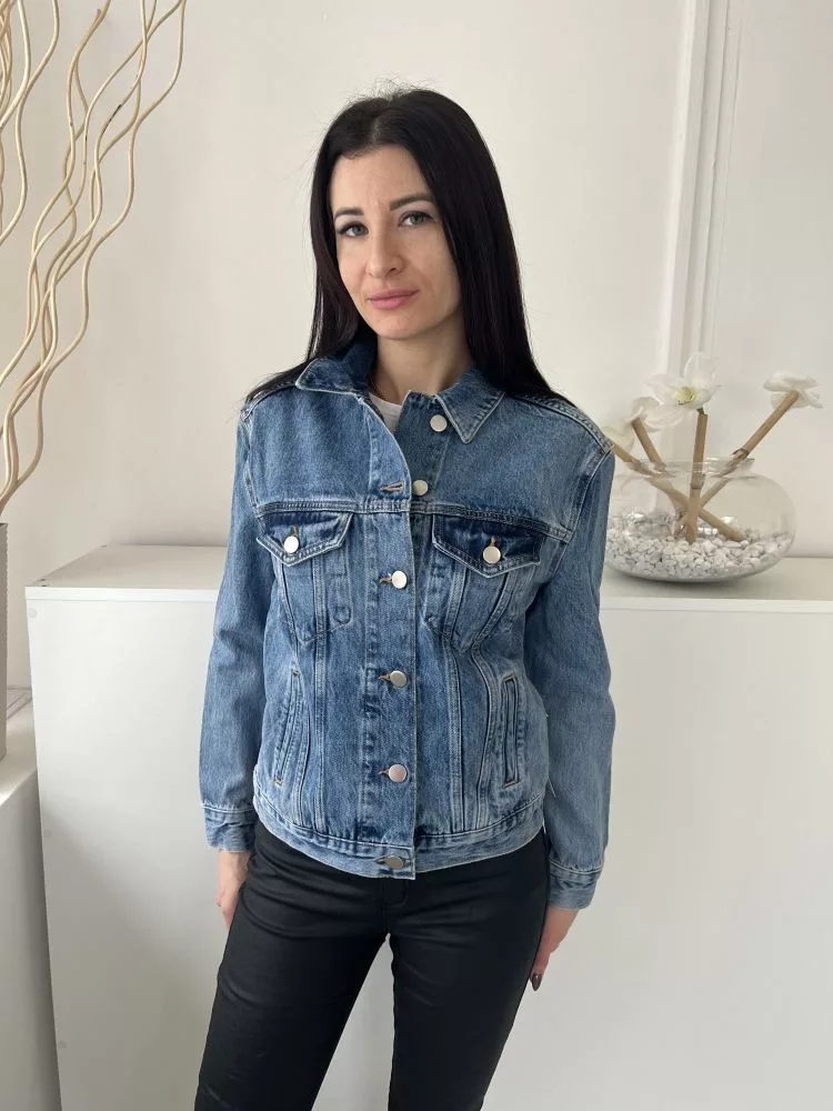 ÚJ Michelle Keegan (M) Kék Elől Gombos, Mellnél Zsebes Koptatott, Farmer Kabát