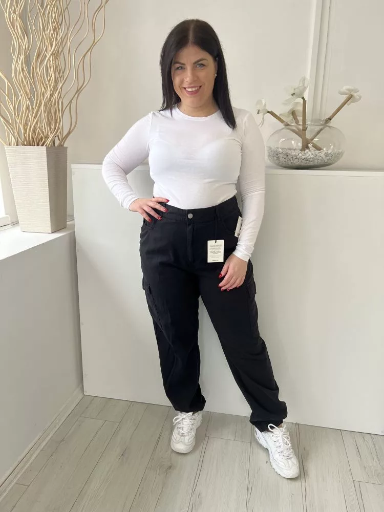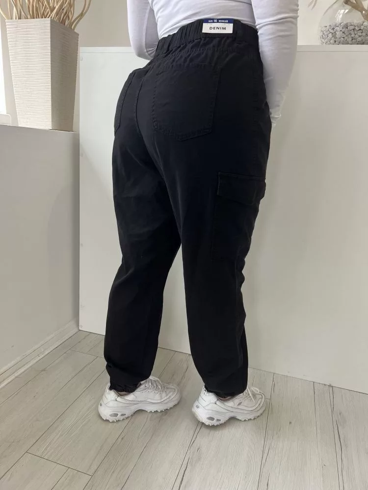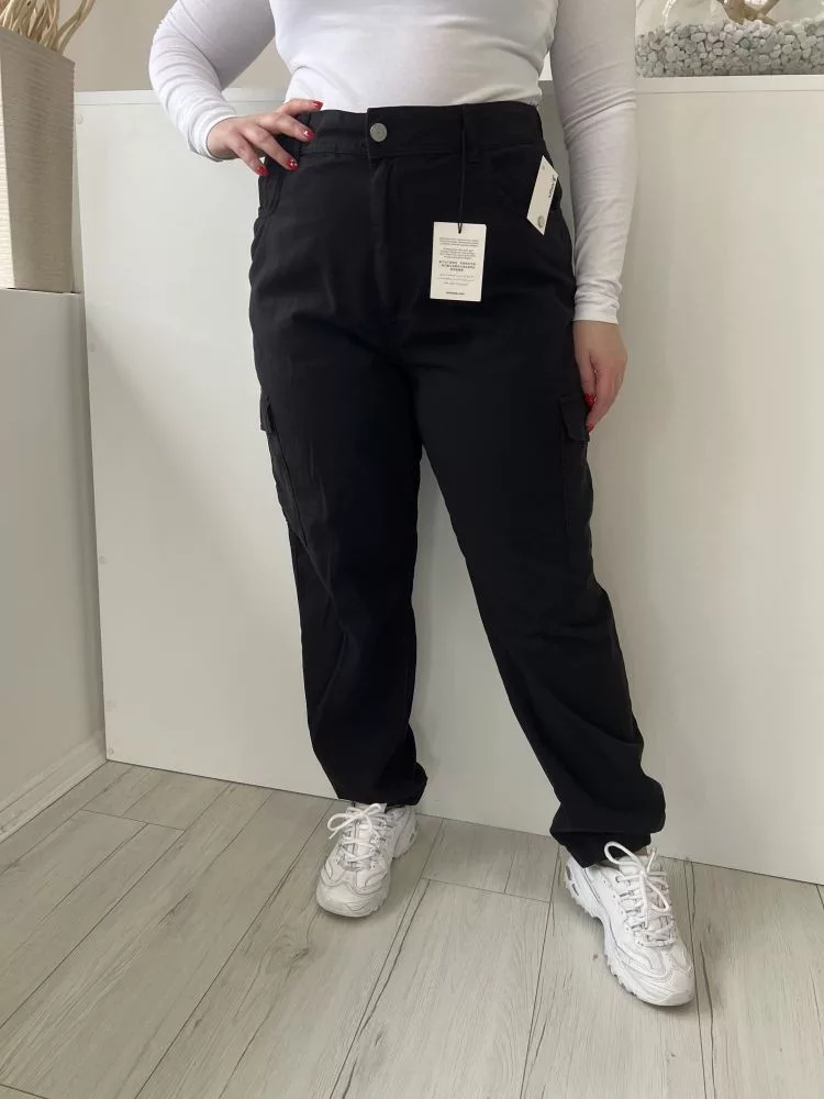 ÚJ New Look (L) Fekete Elől Gombos, Oldalt Zsebes Hátul GumisDerekú Nadrág