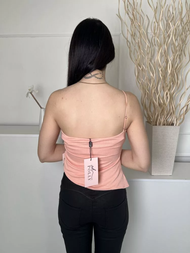 ÚJ Oh Polly (M) Barackszínű Félvállas, Állítható Pántú Mellnél Nyitott, Oldalt Húzott Felső