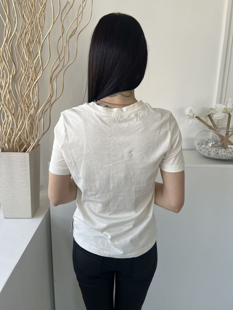 ÚJ Papaya (M) Törtfehér Elől Feliratos, 100% Pamut Fémdísz Pöttyös Felső