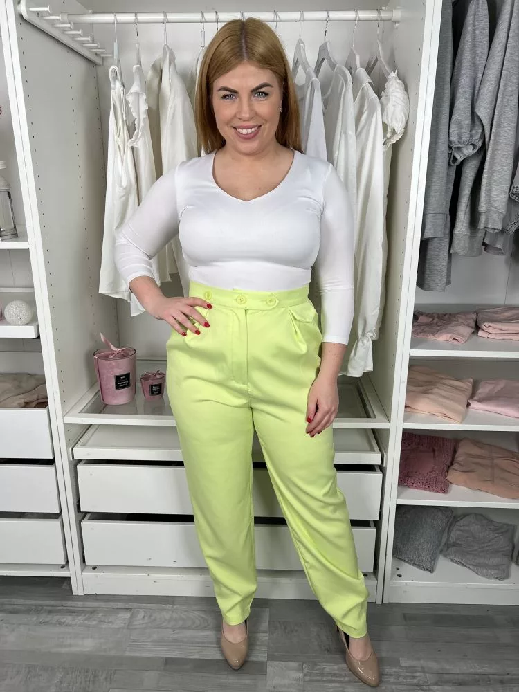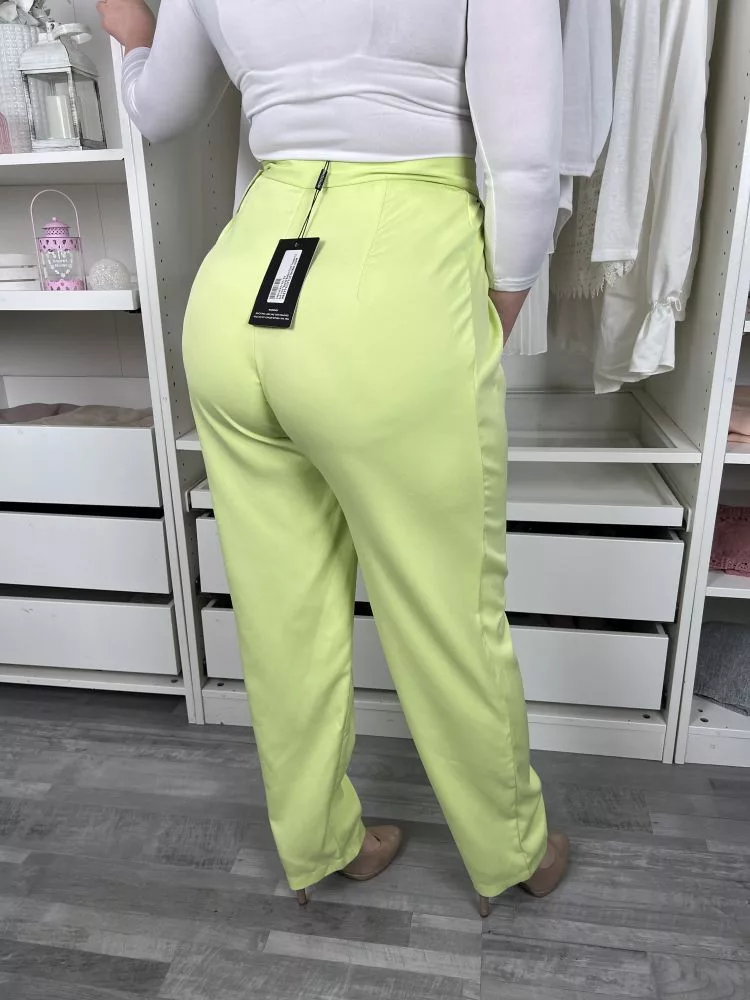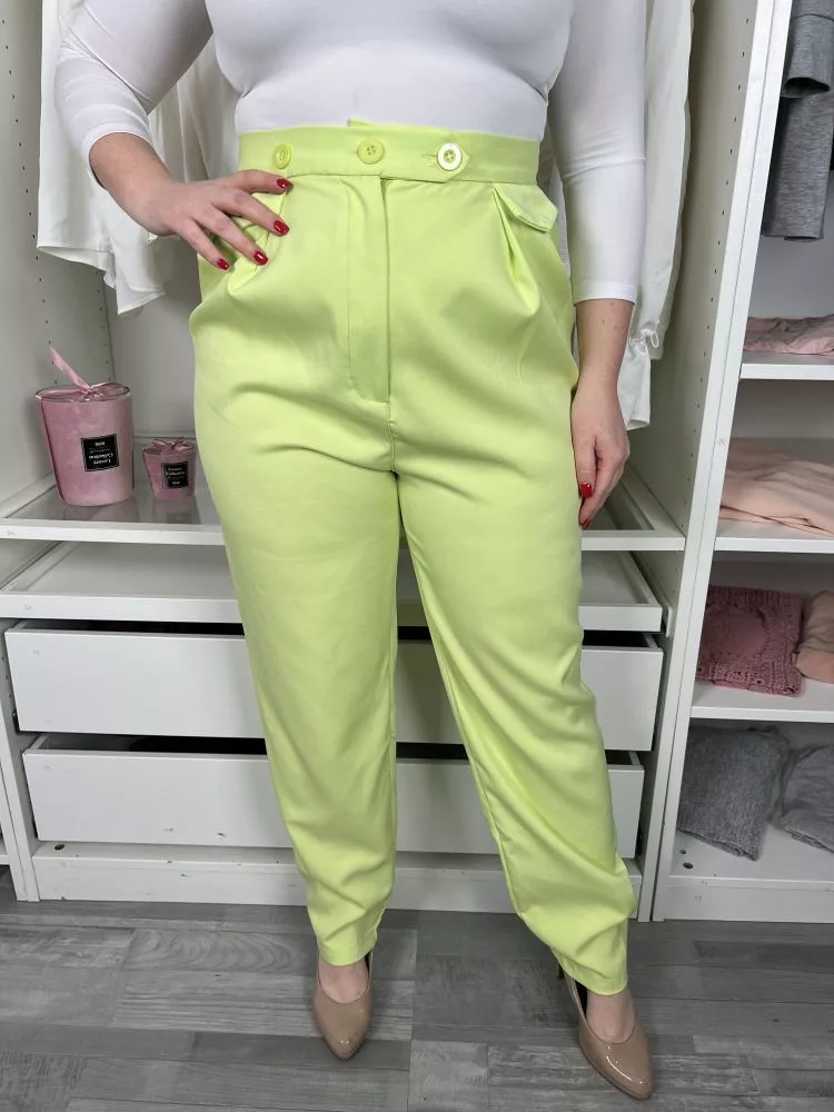 ÚJ Pretty Little Thing (M) Neon Banánzöld Elől Gombos, Zsebes Magas Derekú Nadrág