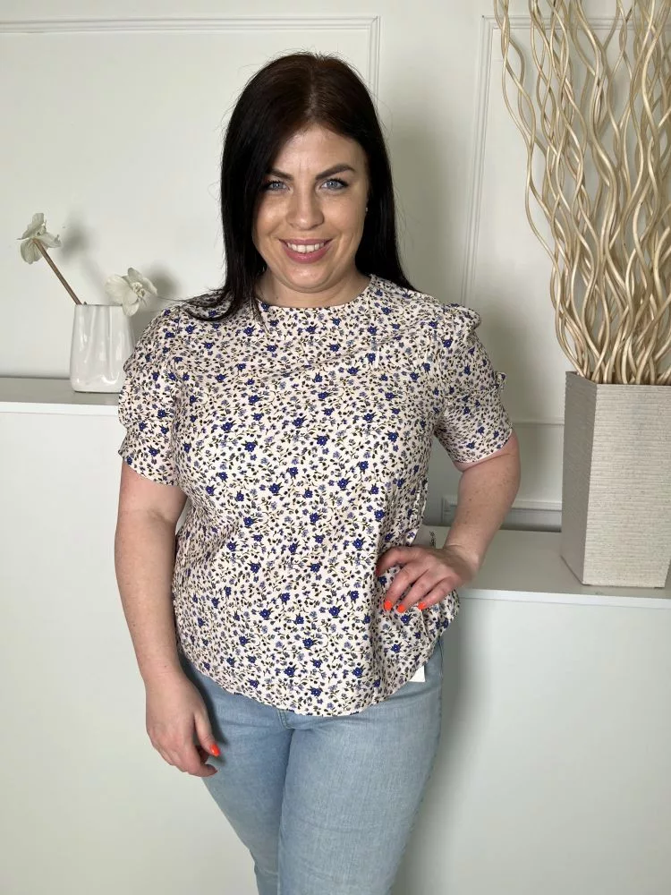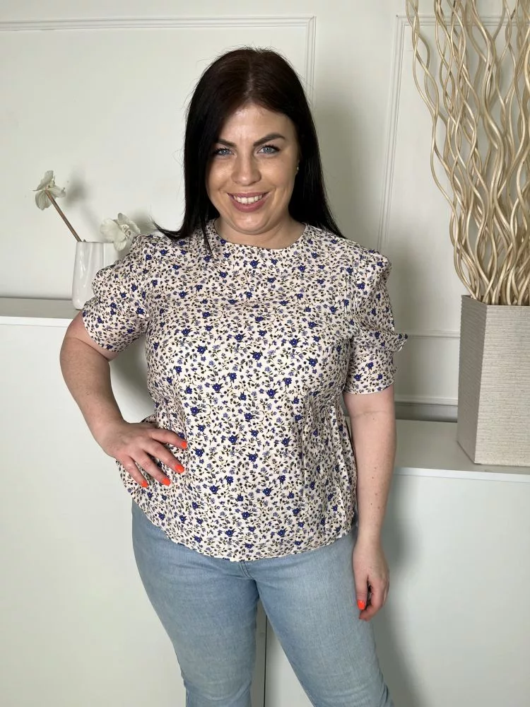 ÚJ Primark (M) Barack Kék Apró Virágos, Derékban Megkötős Hátul Nyakban Gombos Felső