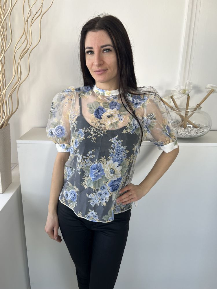 ÚJ Primark (M) Fehér Színes Virágos, Hátul Nyakban Gombos Áttetsző, Bélés Nélküli Felső