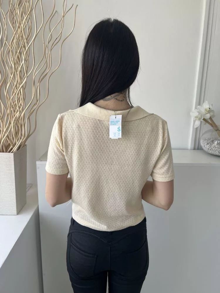 ÚJ Primark (S) Vanília Anyagában Mintás Galléros, Gépikötött Felső