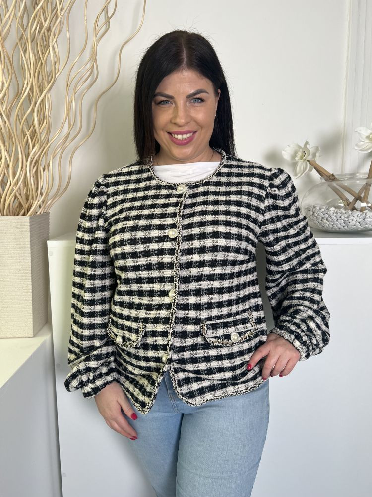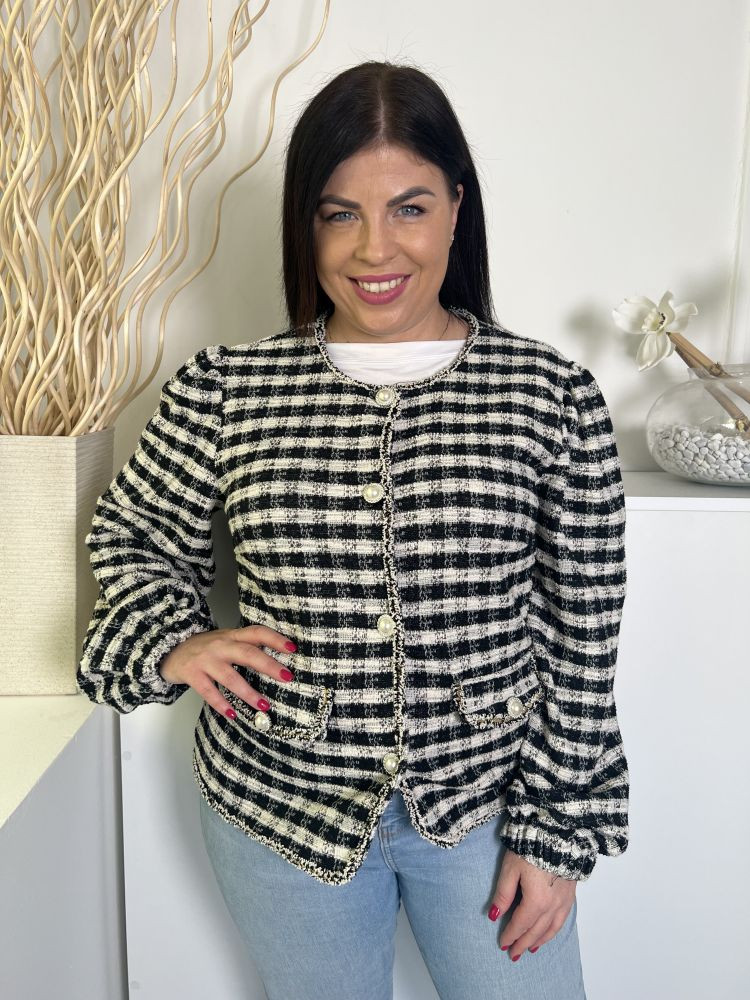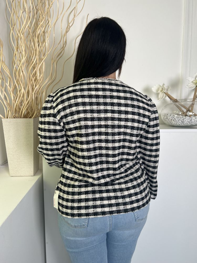 ÚJ River Island (L) Fekete-Fehér Kockás, Elől Gombos Díszzsebes, Gumis Ujjvégű Kabát