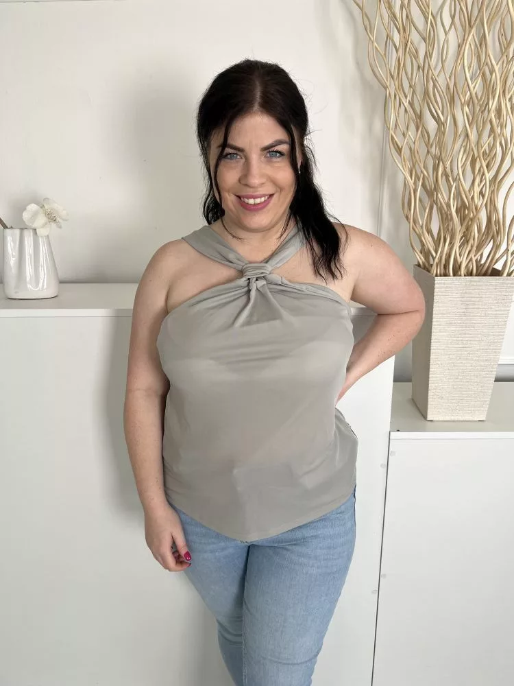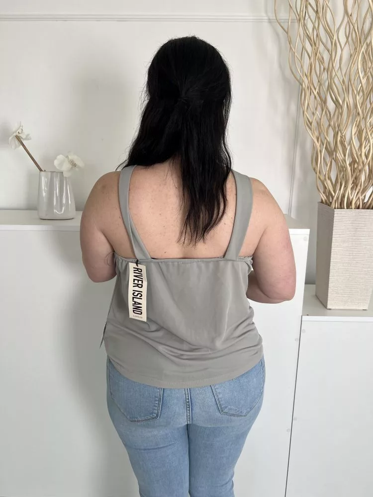 ÚJ River Island (M) Szürke Nyakánál Csavart Rugalmas Anyagú Felső