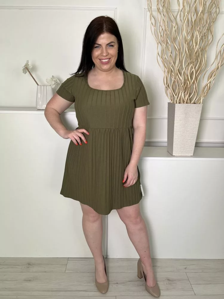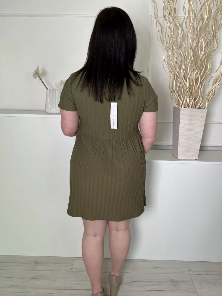 ÚJ Roman (L) Khaki Anyagában Mintás, Derékban Szabott Kocka Kivágású, 59% Pamut Alapanyagú Ruha