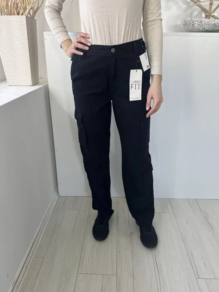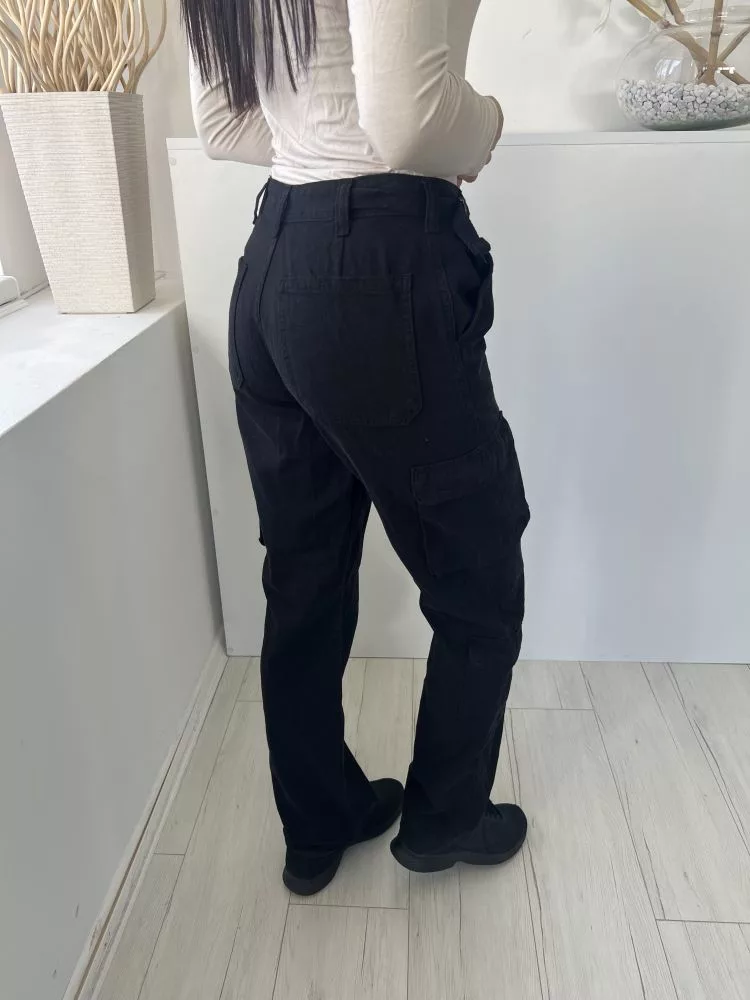 ÚJ Stradivarius (M) Fekete Elől Gombos, Oldalt Zsebes Övtartós Nadrág