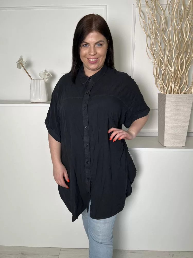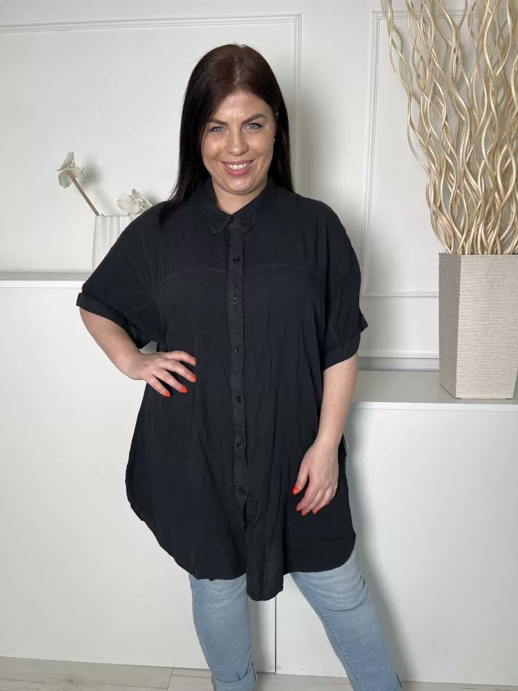 ÚJ Yours (XL) Fekete Elől Végig Gombos, Galléros Hosszított Fazonú Felső