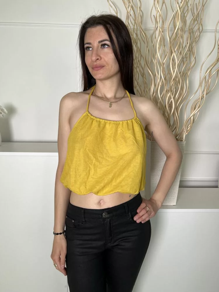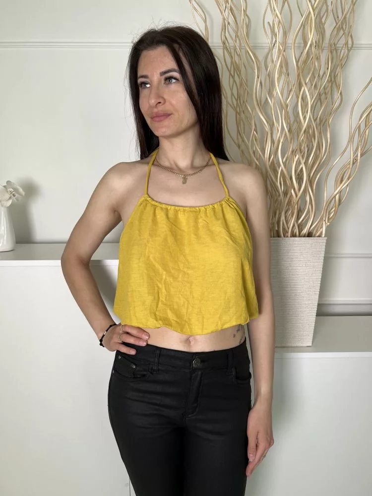ÚJ ZARA (M) Okkersárga Hátul Nyakban Megkötős Rövid Fazonú Felső