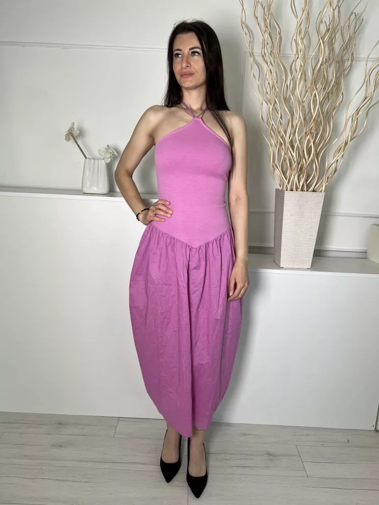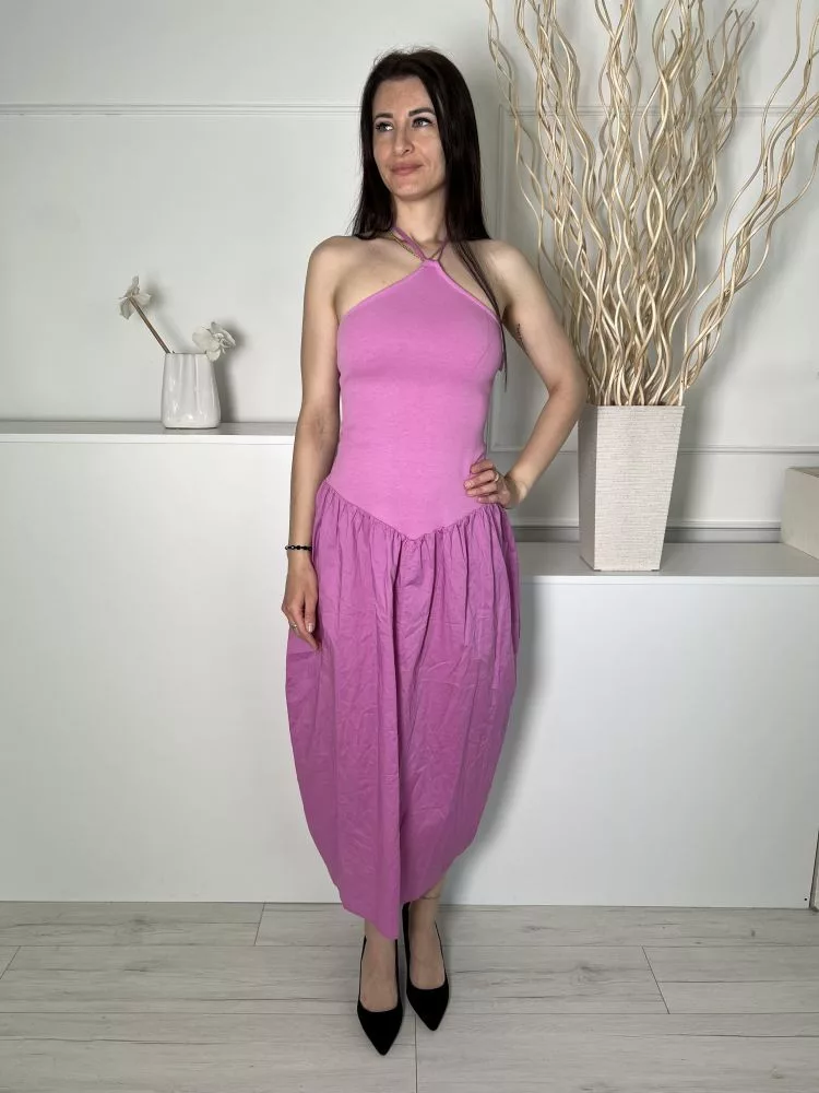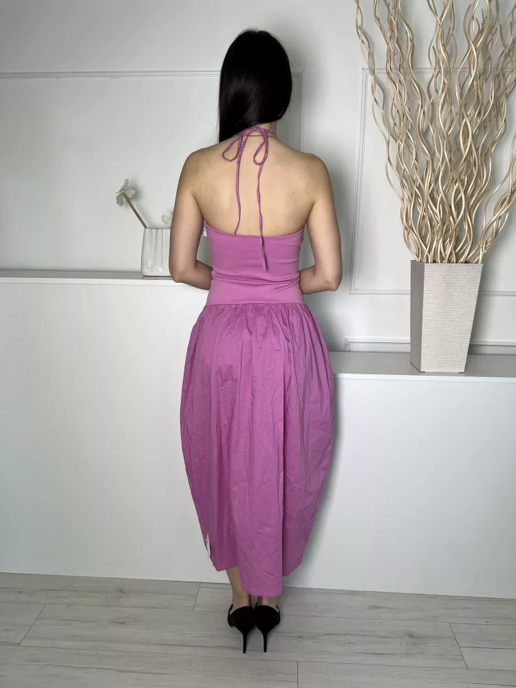 Új ZARA (S) Rózsaszín Hátul Nyakban Megkötős 100% Pamut Alapanyagú Ruha