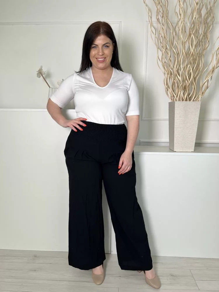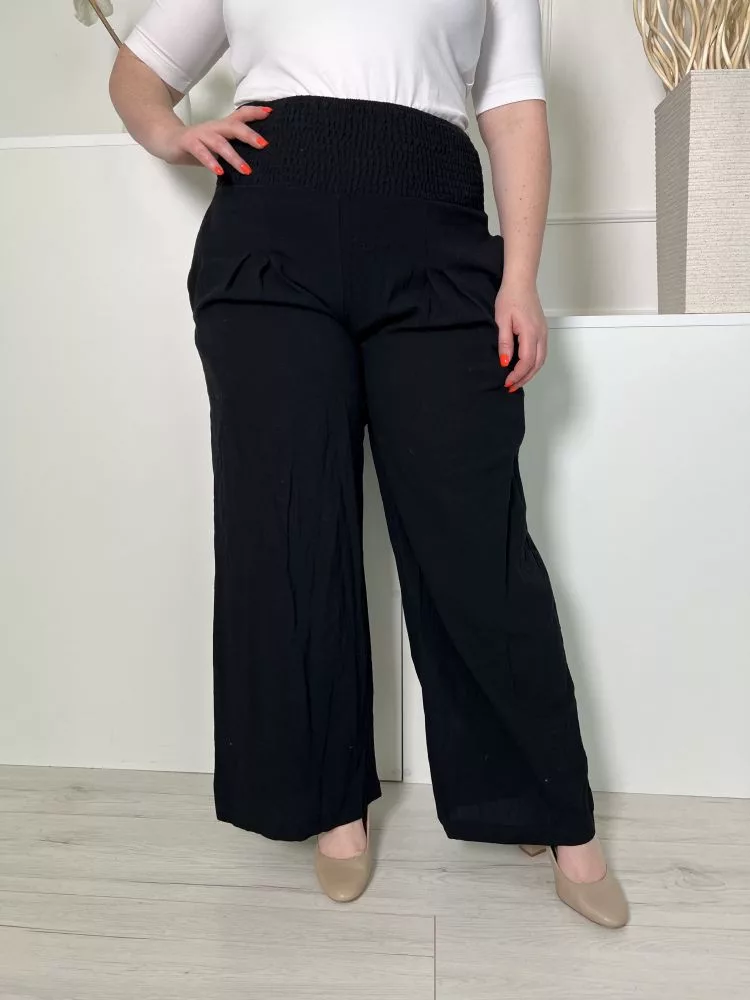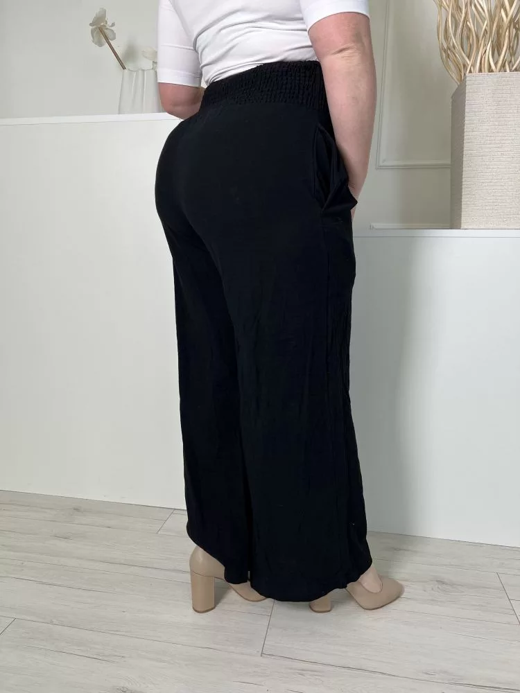 (XL) Fekete Derékban Darázsolt, Zsebes Bőszárú Nadrág