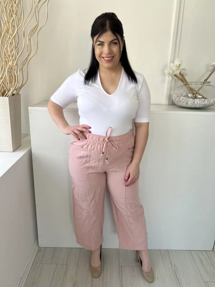 ZARA (L) Pasztell Rózsaszín Derékban Összehúzható, Megkötős Zsebes, Bőszárú Nadrág