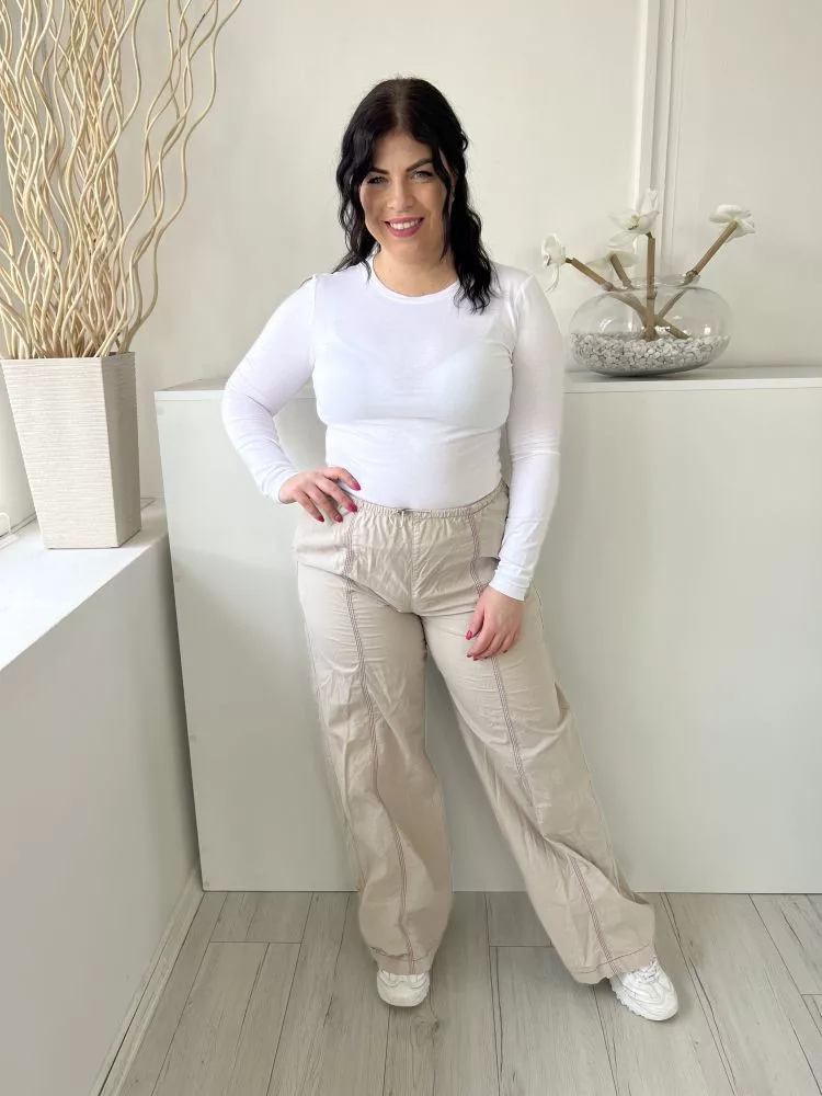 ZARA (M) Drapp Derékban Összehúzható, Díszvarrásos Zsebes, Bőszárú, 100% Pamut Nadrág