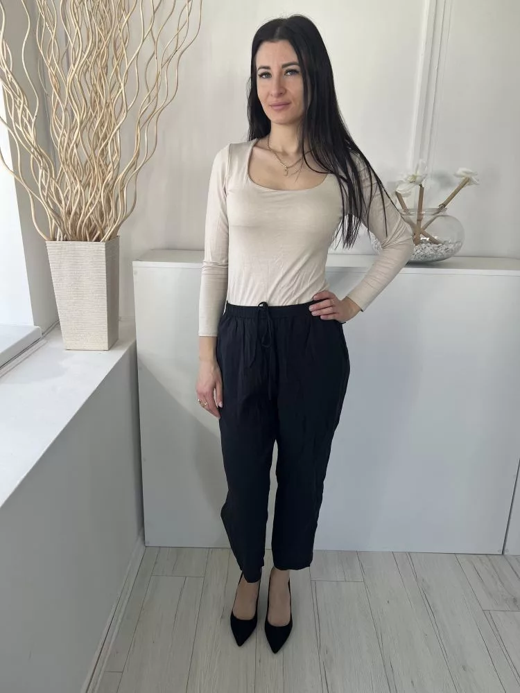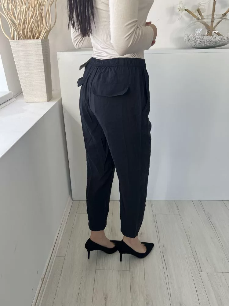 ZARA (M) Fekete Derékban Összehúzható, Zsebes Megkötős, Vékony Anyagú Nadrág