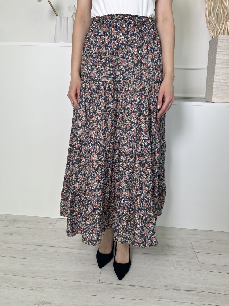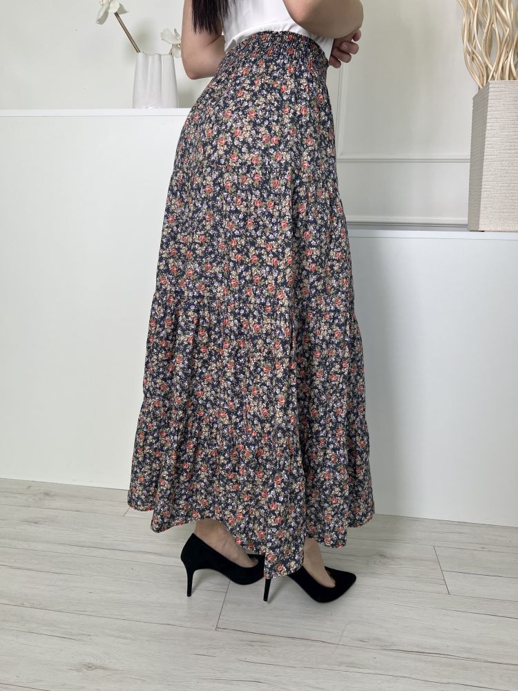 ZARA (M) Sötétkék Színes Apró Virágos, Derékban Darázsolt 100% Pamut Alapanyagú Szoknya