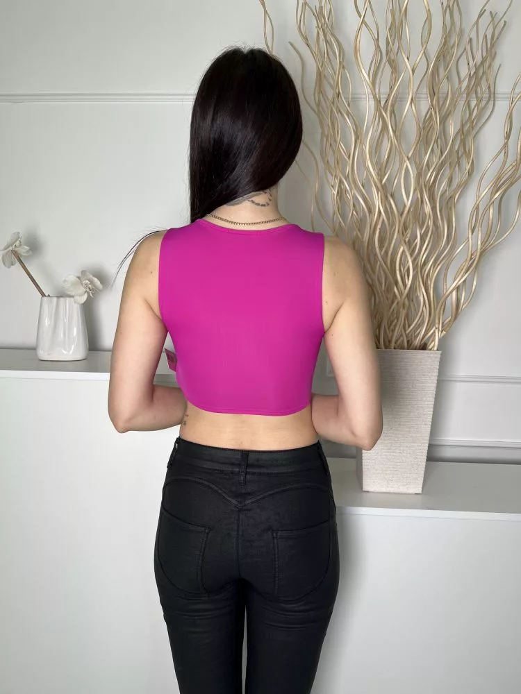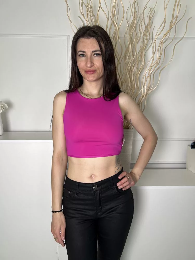 ZARA (S) Ciklámen Kerek Nyakú, Rugalmas Anyagú Rövid Fazonú Felső