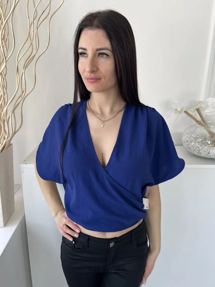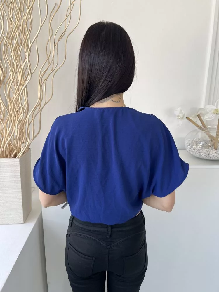 ZARA (S) Királykék Mellnél Díszlapolású, Vállán Ráncolt Gumisderekú, Bőujjú Felső