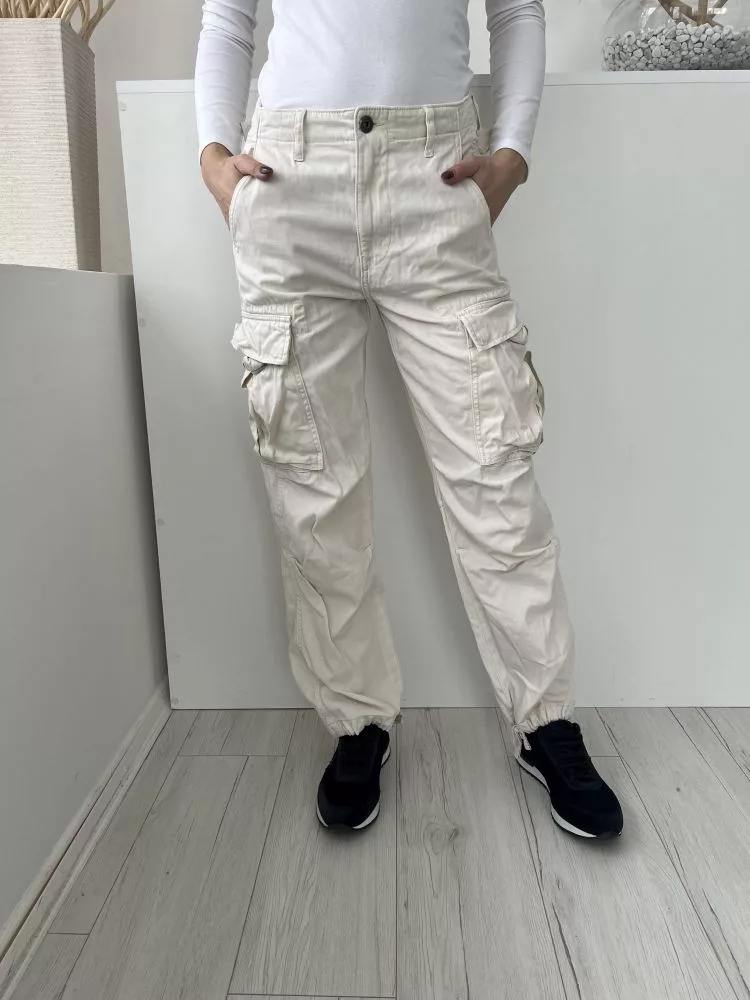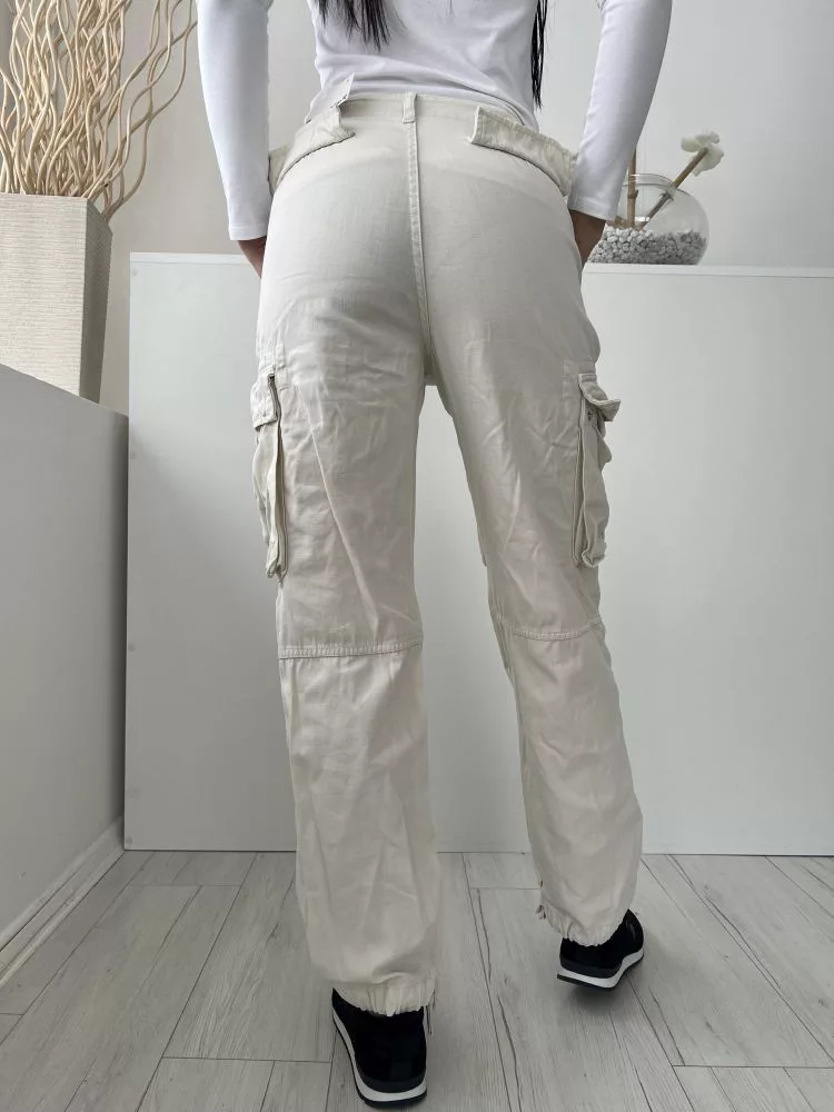 ZARA (XS) Törtfehér Elől Gombos, Oldalt Zsebes Alján Összehúzható, Megkötős Nadrág